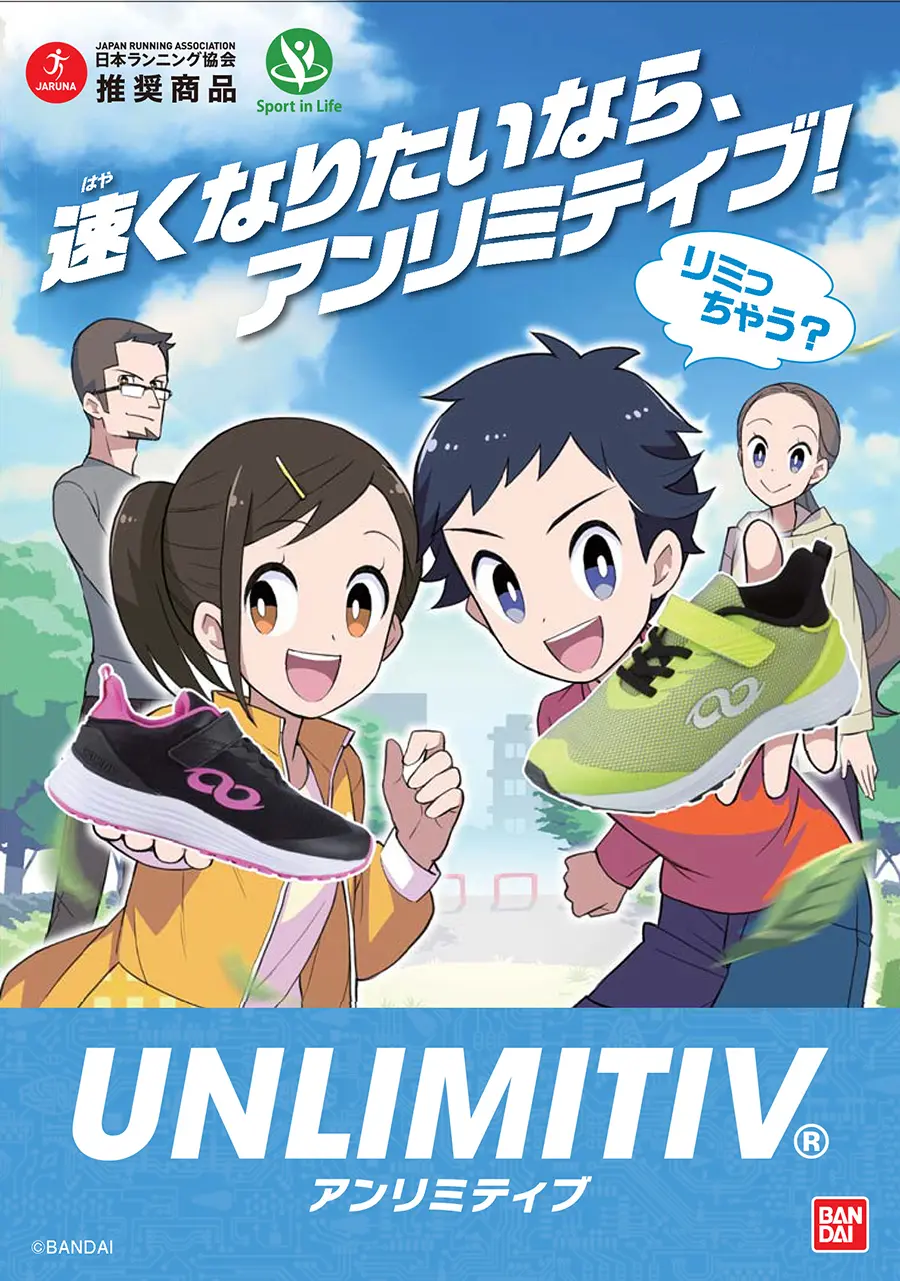 - スマホアプリとの連動で、運動能力を可視化できる新感覚シューズ。自分の運動能力を高めたり、アルティメットモードで友だちと競争したり。アンリミティブを履けば外で思いっきり遊びたくなる!