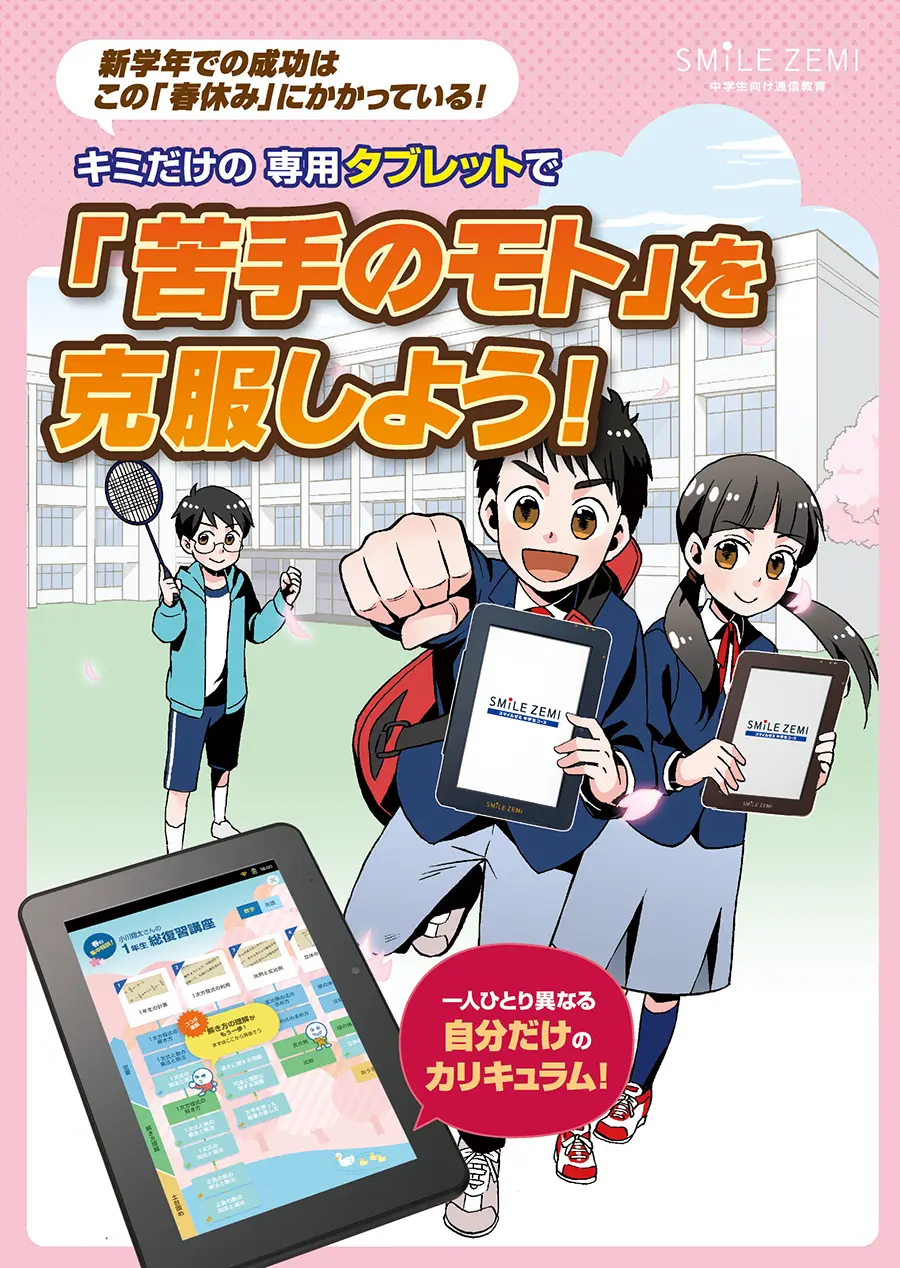 - 新学年での成功の鍵は、春休みの勉強法にあり。一人ひとり違う「苦手のモト」を知り、克服するために、スマイルゼミのオーダーメイド型カリキュラムが大活躍!