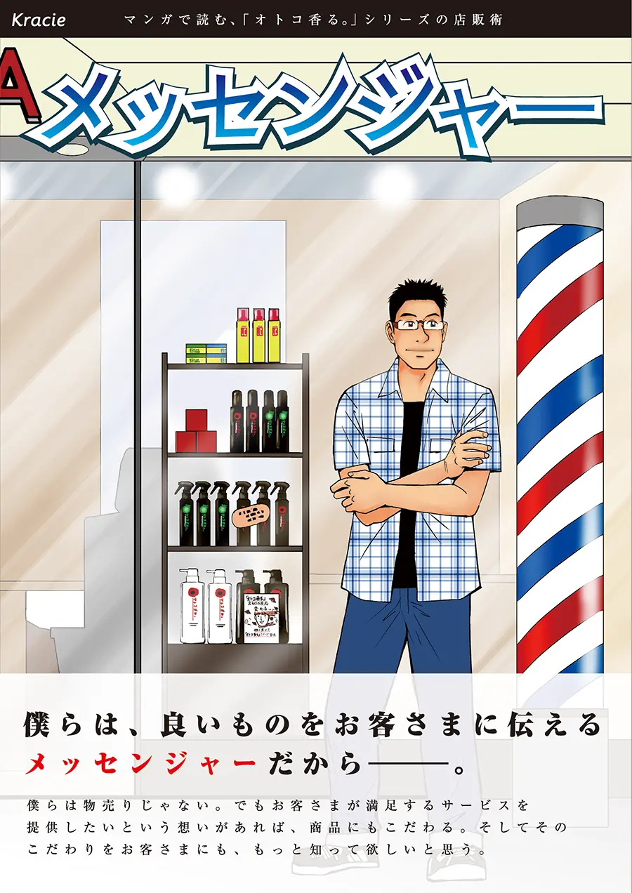 - 「店販」に対して消極的なヘアーサロンアオバ。ある日東京へ修行に出ていた長男(主人公)が帰ってくる。修行で学んだ、お客さま満足への強い思いが、サロ ンの経営者である父親に「店販」実施の気持ちを呼び起こさせる。「店販」の魅力とテクニックが盛り込まれた、マンガで読む店販術。