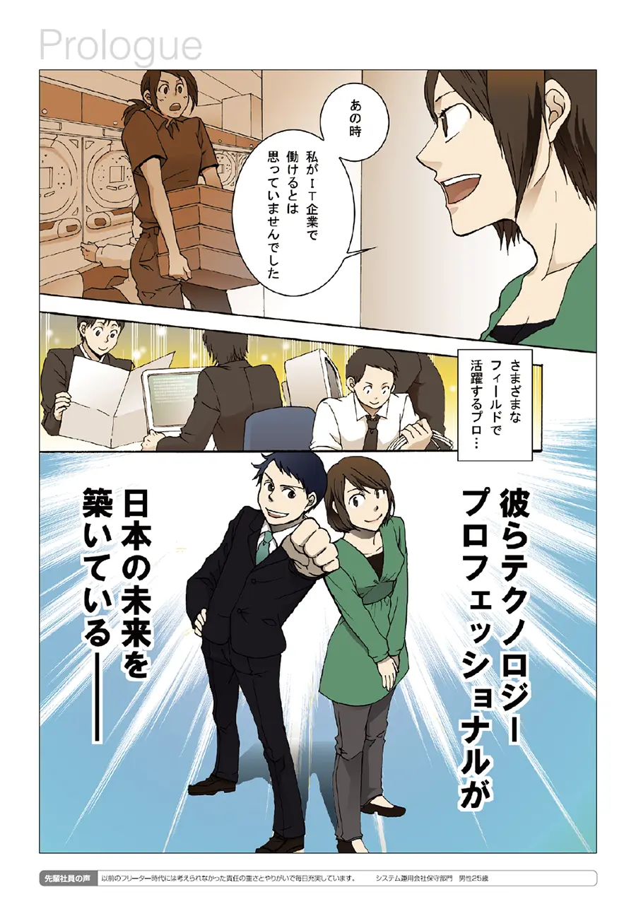 今日も「モバイルを通じたお客様の幸せづくり」をサポートする中央店のスタッフたち。先輩らが誇らしげに話す、コネクシオで働く「3つの喜び」とは…⁉就職活動生に向けた、仕事のやりがいや魅力を紹介する漫画パンフレットです。
