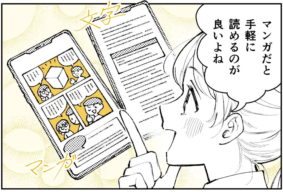 スキマ時間の学習にも漫画ならではの手軽さが活かせます。